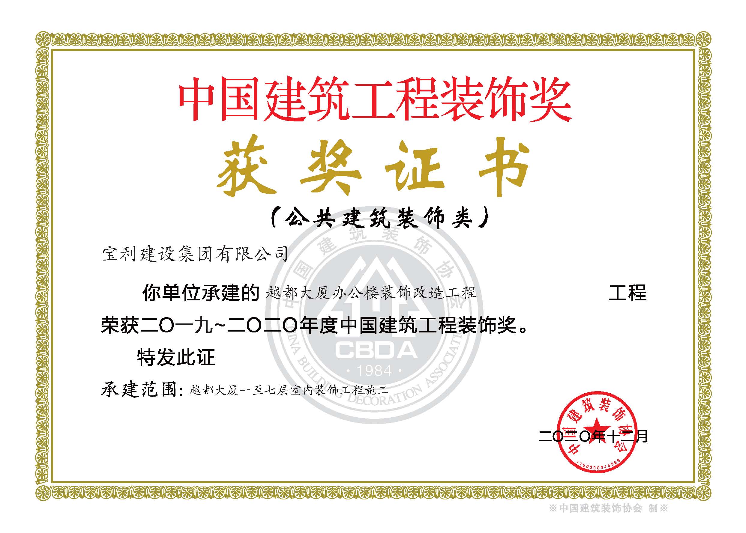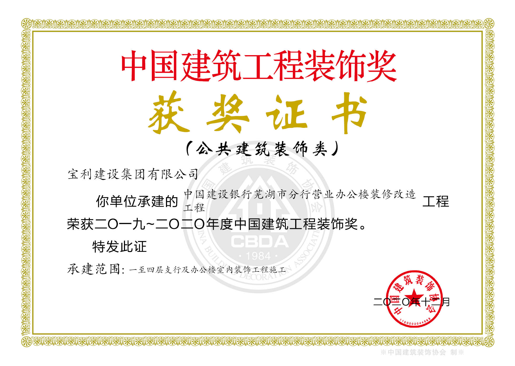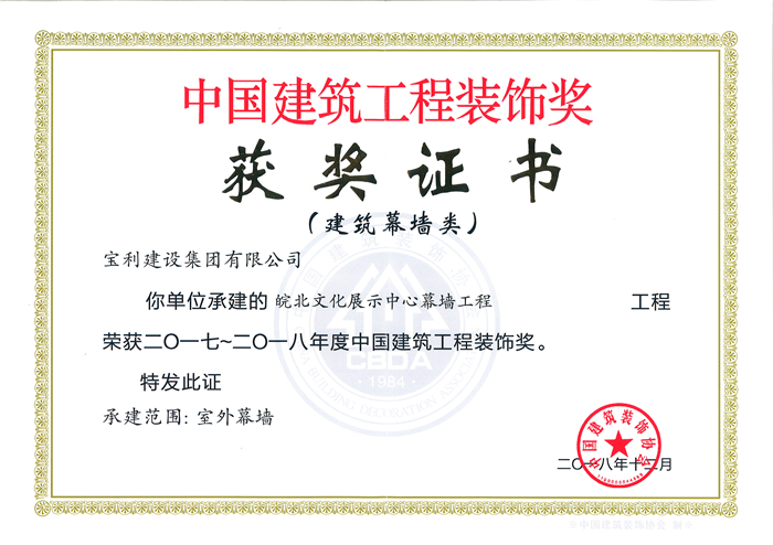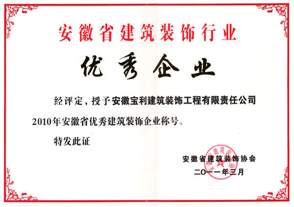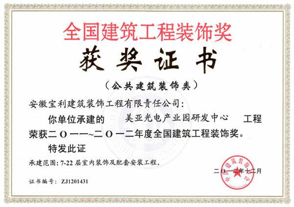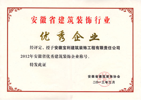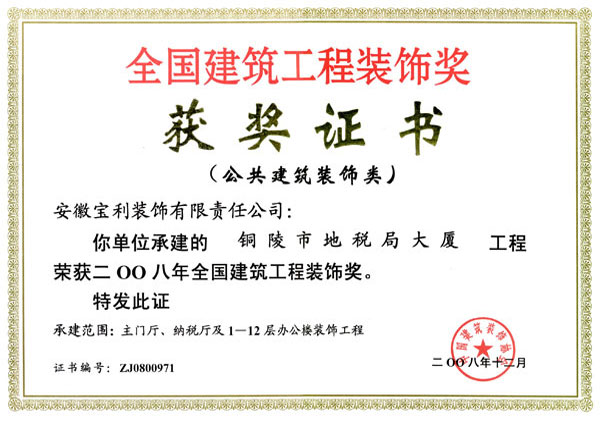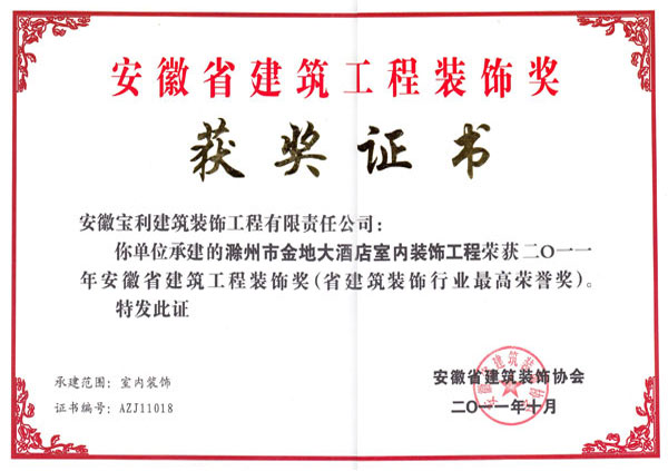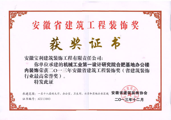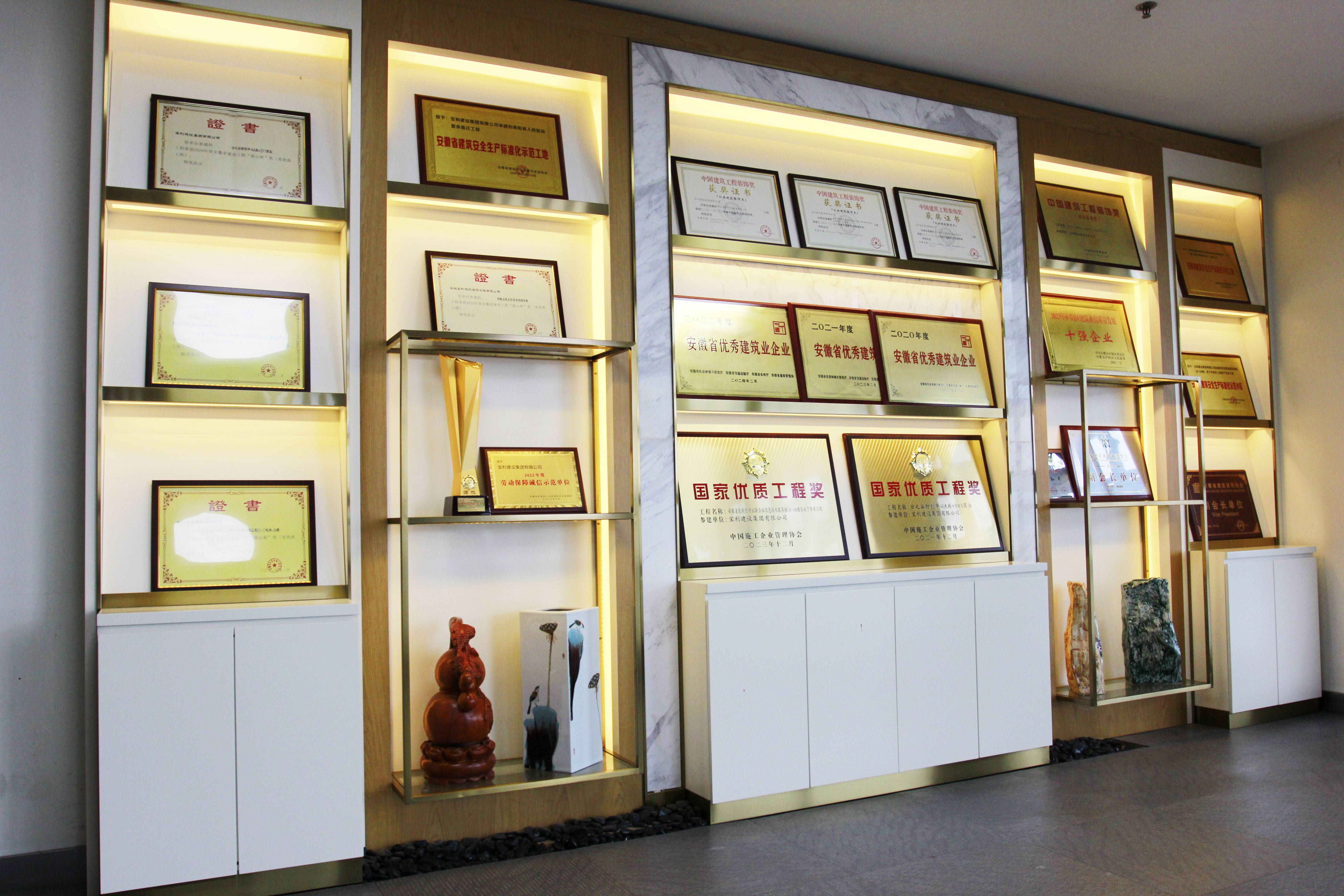 立足安徽,輻射全國(guó),近幾年在省內(nèi)外承建了一大批具有代表性工程,類型涵蓋了行政辦公樓、甲級(jí)寫字樓、五星級(jí)酒店、大型商場(chǎng)、金融機(jī)構(gòu)、醫(yī)療機(jī)構(gòu)、精品住宅、商業(yè)街區(qū)等大綜型項(xiàng)目,獲得“國(guó)家優(yōu)質(zhì)工程獎(jiǎng)”、“中國(guó)建筑工程裝飾獎(jiǎng)”、“全國(guó)建筑裝飾行業(yè)科技創(chuàng)新成果獎(jiǎng)”、“中國(guó)建筑裝飾行業(yè)科學(xué)技術(shù)獎(jiǎng)”、“華東杯”、“黃山杯”、“省標(biāo)準(zhǔn)化工地”、“琥珀杯”等榮譽(yù)獎(jiǎng)項(xiàng),連續(xù)多年獲得安徽省住房和城鄉(xiāng)建設(shè)廳認(rèn)定“安徽省優(yōu)秀建筑業(yè)企業(yè)”。
