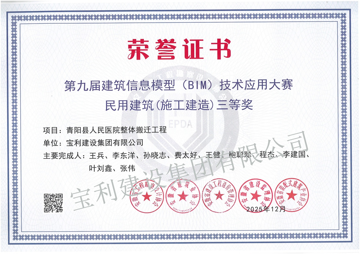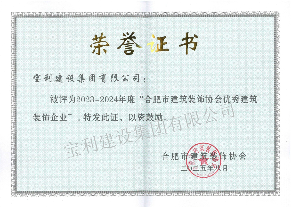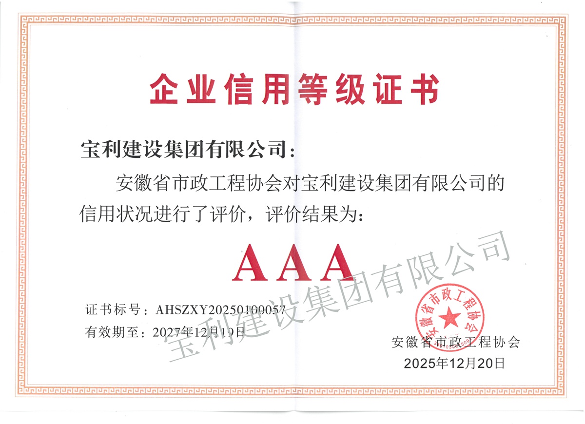 寶利建設(shè)集團(tuán)有限公司成立于1992年,前身為安徽寶利建筑裝飾工程公司,2016年注冊(cè)登記為集團(tuán)公司。集團(tuán)旗下設(shè)有安徽寶威投資有限責(zé)任公司、安徽寶利建筑勞務(wù)有限公司,分設(shè)北京分公司、上海分公司、池州分公司、蕪湖分公司、滁州分公司、黃山分公司。通過(guò)質(zhì)量、環(huán)境、職業(yè)健康安全、企業(yè)誠(chéng)信四大管理體系認(rèn)證,是中國(guó)建筑業(yè)AAA級(jí)信用企業(yè)、中國(guó)建筑裝飾AAA級(jí)信用企業(yè)、安徽省優(yōu)秀建筑業(yè)企業(yè)、安徽省AAA級(jí)守合同重信用企業(yè)、安徽省營(yíng)收百?gòu)?qiáng)民營(yíng)企業(yè)等。